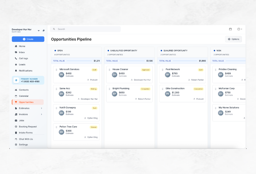 Monitor every lead from first contact to closed job with a simple visual dashboard.